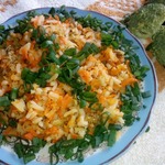 [+4]Лук и морковь слегка обжарила, вместо воды куринный бульон, в конце добавила ложку сливочного сыра