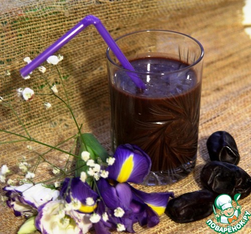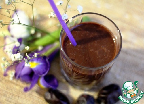 Добавить к рисовому молоку какао и финики (сладость напитка регулируйте индивидуально). Я финики предварительно очистила от кожицы - это необязательное условие. Просто, в моем случае, она легко снималась, и финики я брала мягкие. Взбить.