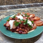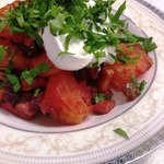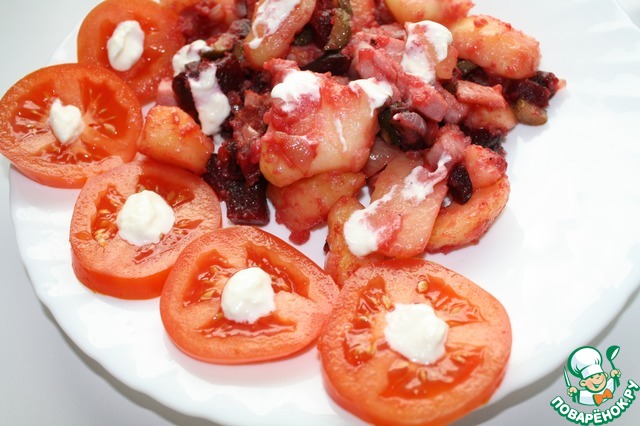 Подают "Питт-и-панна" полив сметаной и с овощами. Еще присыпают петрушкой, но у меня ее не оказалось.