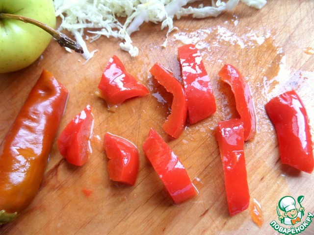 Зелёное яблоко нарезать слайсами вместе с кожицей.