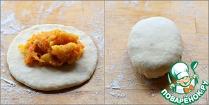 Каждую часть раскатать в лепешку.