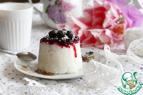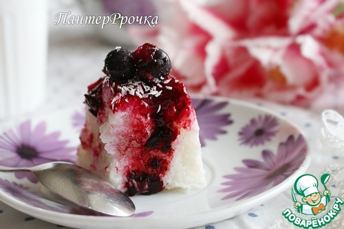 Язык не поворачивается назвать это блюдо кашей. Это очень вкусный десерт. По вкусу он мне напомнил кокосовый чизкейк, который я пробовала в одном ресторане, отсюда и название. Он обладает насыщенным кокосовым вкусом, который идеально сочетается с кислинкой смородины. Этим блюдом можно лакомиться также и в пост.