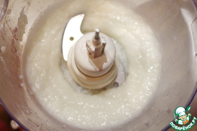 К рису добавить кокосовое молоко, 1.5 ст. л. сахара, кокосовое масло и тщательно взбить до гладкости. Добавить кокосовую стружку и взбить еще немного.