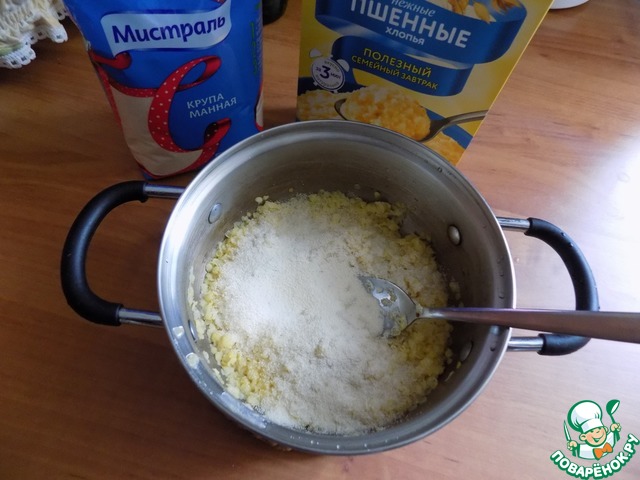 (Вне поста заправляю распаренные хлопья сливочным маслом и добавляю яйцо. Манку и подсолнечное масло не кладу.) -