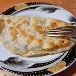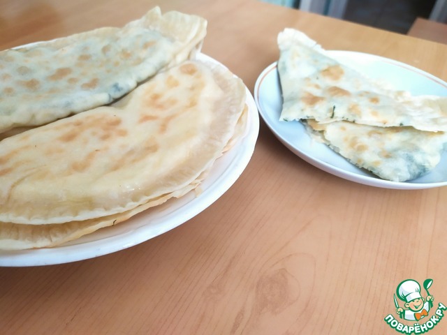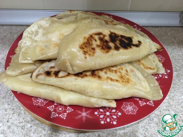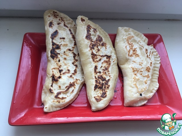 Складываем лепешку пополам, ладонью слегка прижимаем сверху, чтоб вышел лишний воздух и вилкой защипываем край.