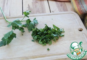 Полпучка любой зелени по вкусу промыть, обсушить бумажным полотенцем, мелко нарезать.