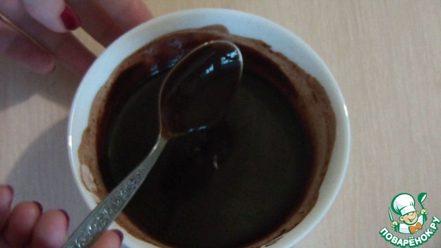 Для глазури смешиваем сахар, какао-порошок и воду. Ставим в микроволновку готовим 2-3 минуты, но каждые 10-15 секунд перемешиваем. Готовую глазурь остужаем.