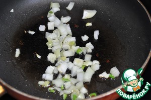 Доливаем на сковороду масло, обжариваем нарезанный кубиками лук.