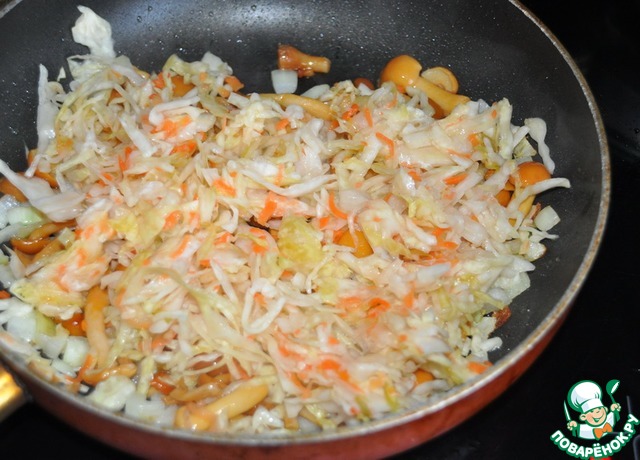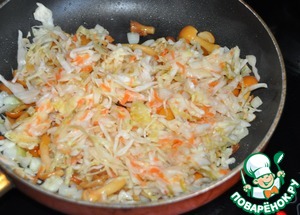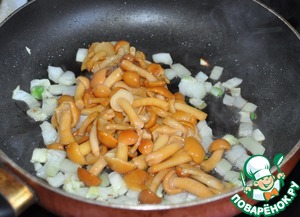 Обжариваем грибы с луком пару минут на среднем огне. -