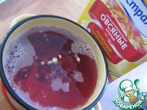 Процедить через сито, - отвар слить и в теплый добавить по вкусу и желанию мед или сироп, - я добавила сироп шиповника.