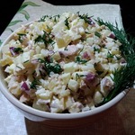 Рецепт этого салата нашла на просторах инета, долго к нему присматривалась, как-то смущал меня набор ингредиентов в нем. Оказалось, что зря! Салат очень вкусный! Заходите, пробуйте!
