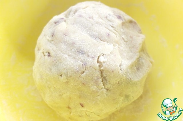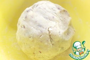 Всыпаем в два-три приема просеянную муку, замешиваем тесто. Скатываем тесто в шар и убираем в холодильник на 10-15 минут.