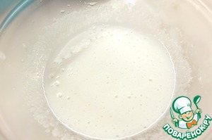 Для начинки слегка взбиваем белок, сахар и ванильный сахар.