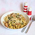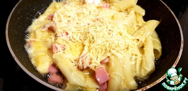 Рецепт «Сливочные макароны с колбасой и сыром»: