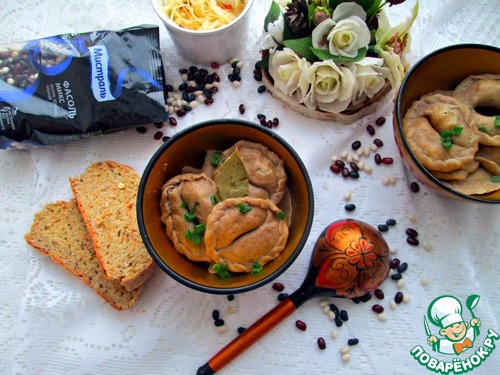 Вот в срезе видно, двойная начинка - пикантная фасолевая и ароматная картофельная! Приятного аппетита!