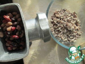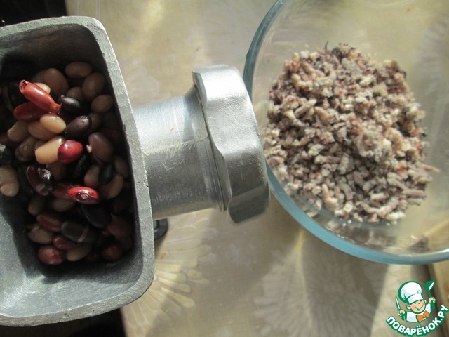 После вынуть фасоль, оставить остывать. Остывшую фасоль пропустить через мясорубку.