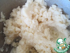 Размять картофель толкушкой, добавив мелко нарезанный лук и 3 столовые ложки хорошего растительного масла. -