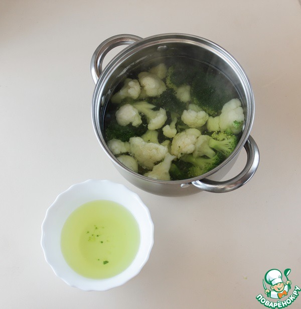 Отварить в подсоленой воде по полуготовности, 2-3 минуты. Овощной бульон слить, но не выливать.