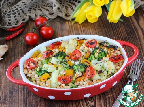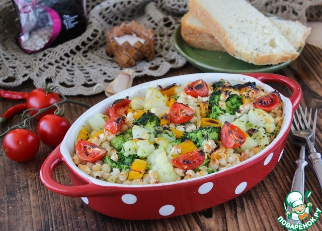 Поставить в разогретую духовку, запекать 25 минут при 180*, учитывая особенности своей духовки. Подрумянить овощи на гриле. -