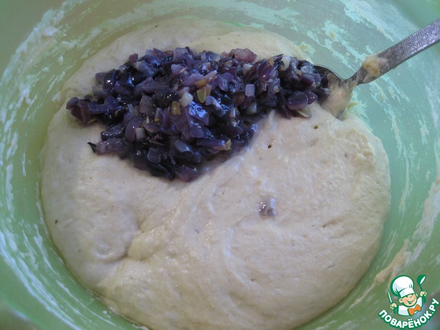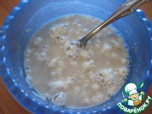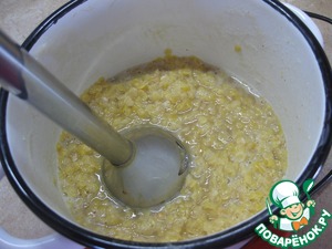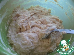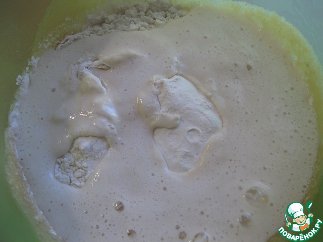 В чечевичное пюре вылить опару, всыпать один стакан муки