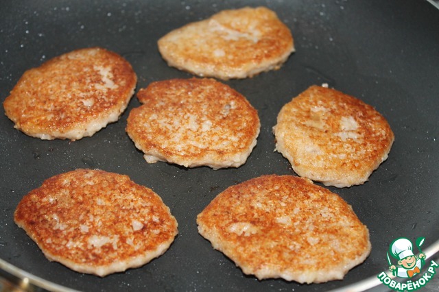 Сковороду разогреть, смазать немного растительным маслом, выкладывая тесто ложкой, жарить оладушки с обеих сторон до золотистой корочки.