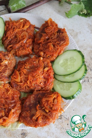Когда они будут все готовы, сделать соус. Для этого нарезать оставшуюся луковицу четверть кольцами, чеснок мелкими кусочками, а морковь натереть на мелкой терке. На сковороде обжарить сначала немного лук, потом добавить к нему морковь с чесноком.
