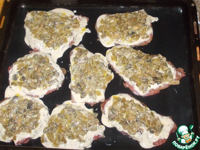 Рецепт «Отбивная телятина, запеченная с грибами»: