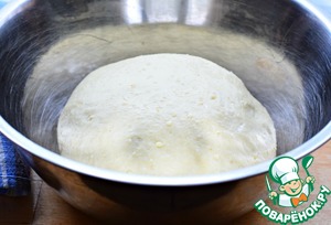 Положить тесто в чашу, смазанную растительным маслом, затянуть пищевой пленкой и поставить в тепло на 45-50 минут - для подхода. -