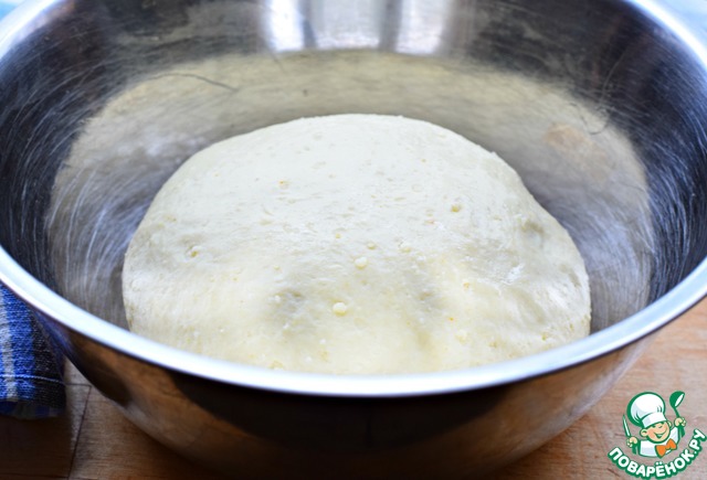 А тесто получается довольно плотное, хорошо держит форму и совершенно не липнет к рукам и к рабочей поверхности, но и, в то же время, оно не должно быть сильно забито мукой.