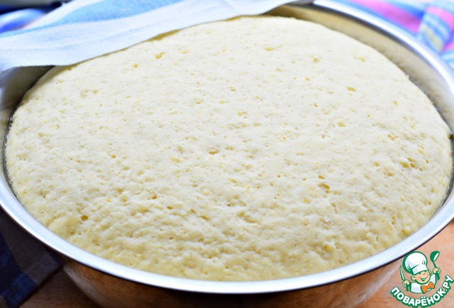 Замесить тесто. Известно, что мука бывает разная, да и пшенная каша может получиться более или менее густой, чем у меня. Поэтому сразу всю муку всыпать не стоит, ее может понадобиться чуть меньше или больше.