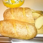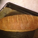 У меня вышел увесистый такой батон - на всю диагональ противня