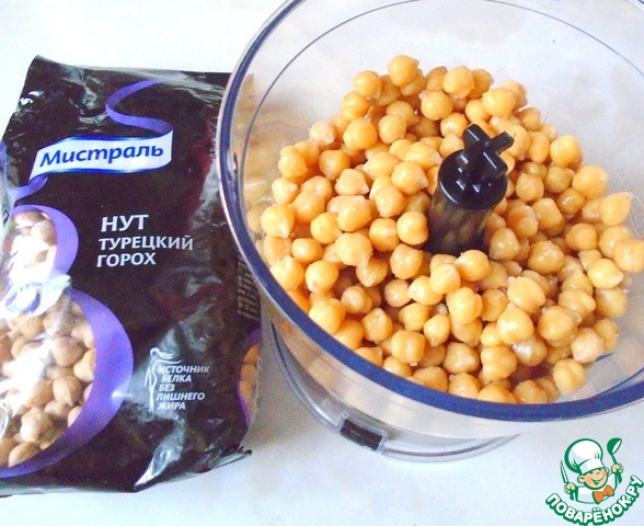 Горох нут ТМ Мистраль отварить заранее, как указано на упаковке. Откинуть его на дуршлаг, остудить. Отвар сохранить.