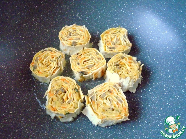 Здесь по желанию, можно обжарить, а можно оставить, как есть. Я слегка обжарила рулетики с двух сторон.