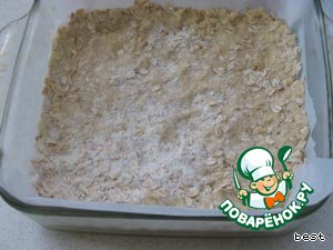 • Выложить тесто в форму (у меня 20x20 см), проложенную бумагой для выпечки. Разровнять руками.