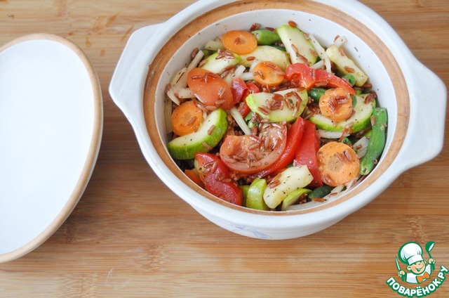 Рецепт «Маринованные овощи, запеченные с красным рисом»: