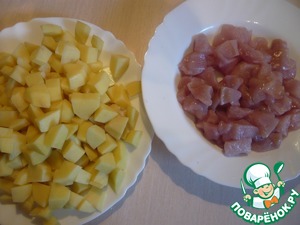 Филе и картофель режем кубиком.
