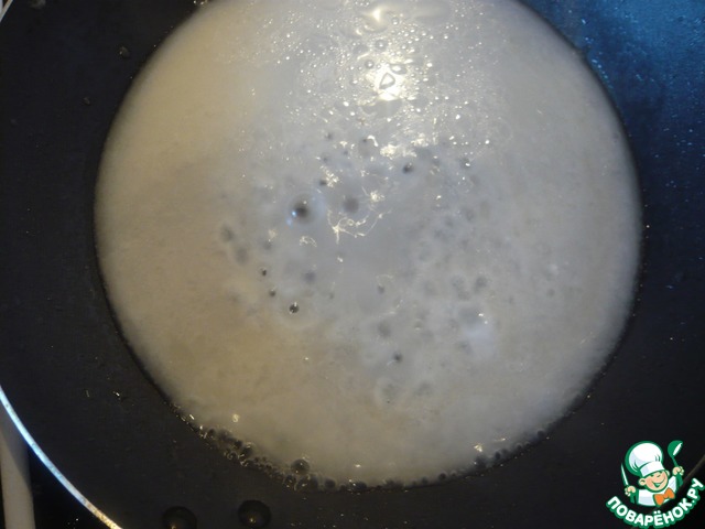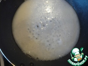 Вливаем муку с водой в разогретую с растительным маслом сковороду.