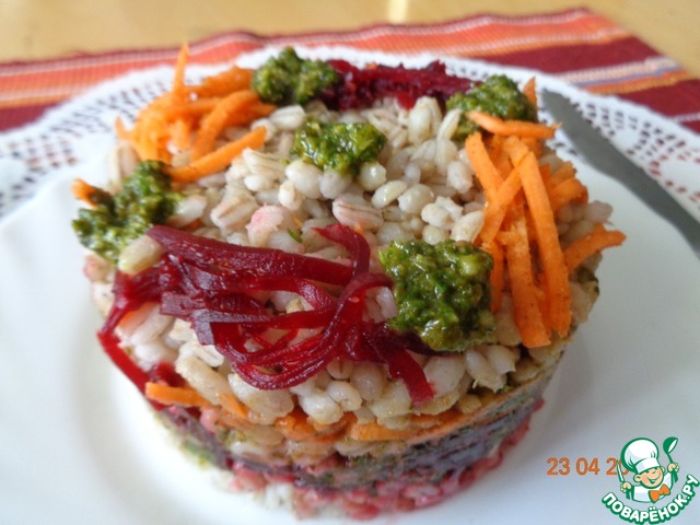 Рецепт «Свекольный салат с перловой крупой»:
