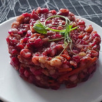Свекольный салат с перловой крупой - необычное, вполне сытное, самостоятельное блюдо. Очень хорошее сочетание перловки со свеклой и морковью и изумительный соус к ним делают салат богатым и восхитительным на вкус. Любители лука могут прослоить им один раз, предварительно замариновав его. Салат универсален, несмотря на то, что он постный, его можно подать на любой стол - хоть в праздники, хоть в будни. Отварите заранее перловую крупу и свеклу и вы быстро, придя с работы, соберете салат на ужин.