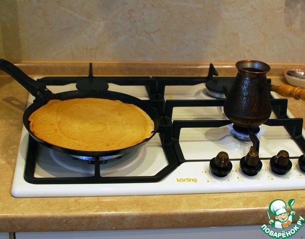 Блины пекутся очень быстро - буквально по 30 секунд с каждой стороны.