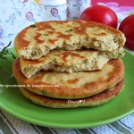 Припыляем стол мукой и раскатываем лепёшку толщиной примерно 5-7 мм. Разогреваем сковороду. Можно обжаривать на сухой сковороде, затем смазать сливочным маслом, а можно на сковороде с разогретым растительным маслом для красивой поджаренной корочки по пару минут с каждой стороны на среднем или чуть меньше огне. Ориентируйтесь по вашей плите...