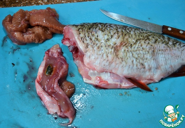 аккуратно удалить внутренности, не нарушив желчный мешочек. -