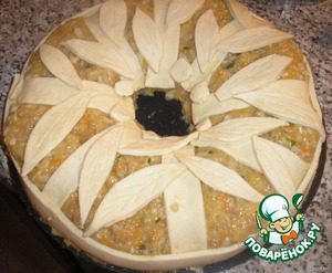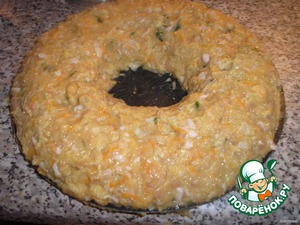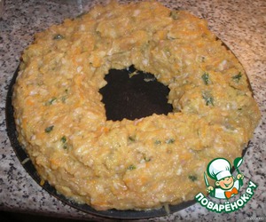 В форму выложить фарш кольцом. Я использовала дно от разъемной формы.
