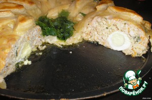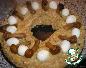 Вдавливаем яйца и грибы. Формируем кольцо.