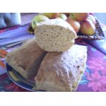 Я немного отступила от рецепта - хлопьев не было никаких и я заменила их молотым геркулесом. Скорее всего поэтому "мякиш" получился чуть клеклым. (Или надо было еще подержать в духовке?..) В любом случае, идея шикарная и располагает к дальнейшим экспериментам.