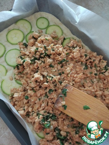 Выкладываем мясную начинку, разравниваем лопаткой