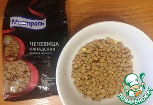 Промытую чечевицу залить 1,5 л. воды. Я взяла зеленую Канадскую от Мистраль. Варить 10 минут после закипания.