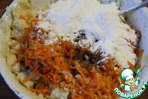 Добавить овощи к пюре, посолить, поперчить и все хорошо перемешать.