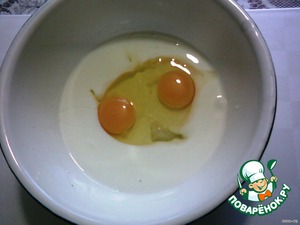 Кефир смешать с яйцами и солью.