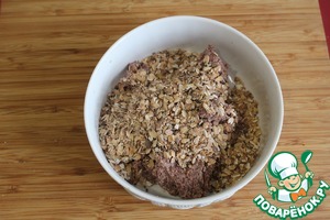 Соединить рисовую смесь с овсяными хлопьями и медом, хорошо перемешать
